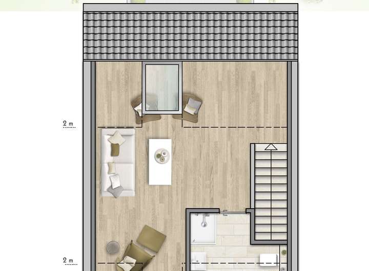 Das Studio im Dachgeschoss ist ein echtes Highlight und punktet mit einem zusätzlichen Duschbad.