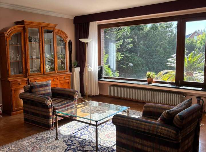 • Erdgeschoss: Großzügiges Wohnzimmer, separates Esszimmer, Küche, Gäste-WC, einladender Wintergarten mit elektrischer Beschattung sowie Zugang zur Terrasse und in den Garten.