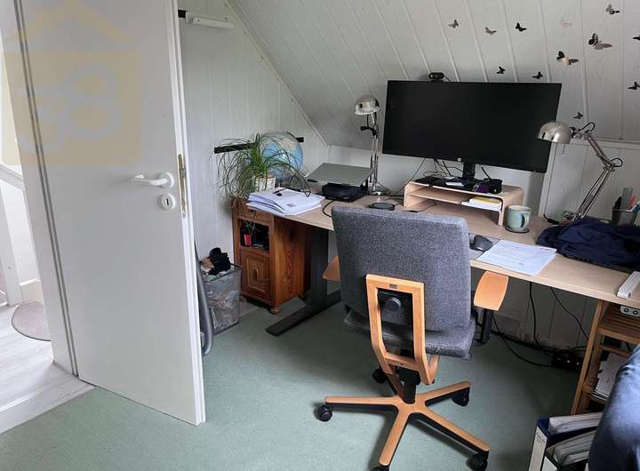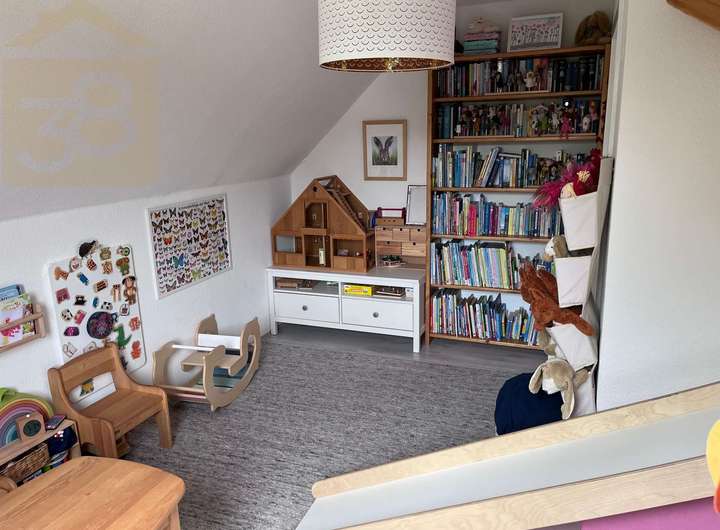 Das Obergeschoss bietet mit zwei Kinderzimmern und einem Schlafzimmer zur Gartenseite genügend Platz für die ganze Familie. Ein großzügiges Badezimmer mit Badewanne und Waschmaschinenanschluss komplettiert diese Etage. Das ausgebaute Dachgeschoss eröffnet zusätzlichen Wohnkomfort: Hier stehen ein weiteres Kinderzimmer sowie ein Arbeitszimmer zur Verfügung – perfekt für Homeoffice, Hobbys oder als Rückzugsort.