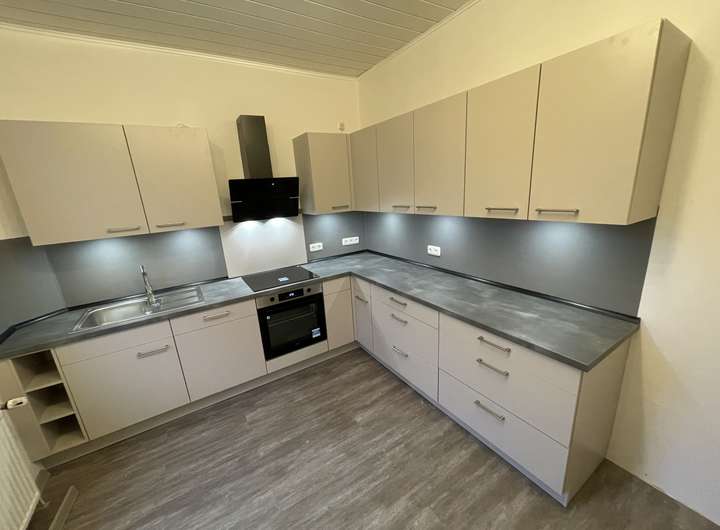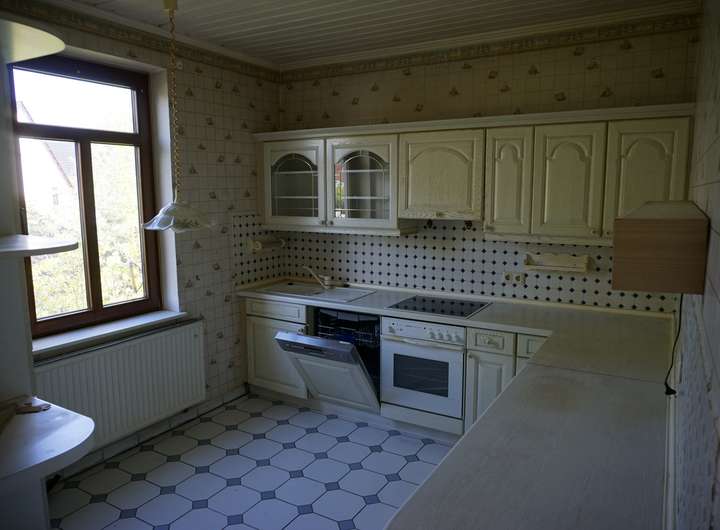 Das Haus steht leer. Im 1 OG ist eine alte Küche eingebaut. Im EG ist eine neue Küche und komplett renovierte Wohnung.