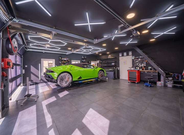 Das Anwesen bietet aber weit mehr als nur Wohnfläche. Eine rund 80 Quadratmeter große, massiv gebaute Doppelgarage mit Fußbodenheizung, Duschbad, Technikraum und ausgebautem Dachboden erweitert das Nutzungsspektrum erheblich. Zwei exklusive Sektionaltore der Firma Hörmann und aufwendig gearbeitete Sandsteinverzierungen unterstreichen die gehobene Qualität dieses Bereichs. Ein weiteres Gebäude mit etwa 30 Quadratmetern Fläche wird aktuell als Gartenhaus genutzt, eignet sich aber auch hervorragend als Atelier, Büro oder Gästehaus.