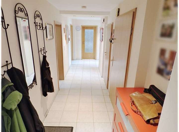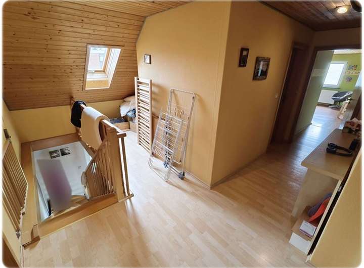 Über den Eingangsflur und das Treppenhaus gelangen Sie zu den beiden Maisonettewohnungen. Die größere Wohnung bietet Ihnen ca. 138 m² Wohnfläche, aufgeteilt in fünf Zimmer und zwei Bäder. Im Obergeschoss betreten Sie die Wohnung über die ansprechende Wohndiele, von der eine Treppe ins Dachgeschoss führt.