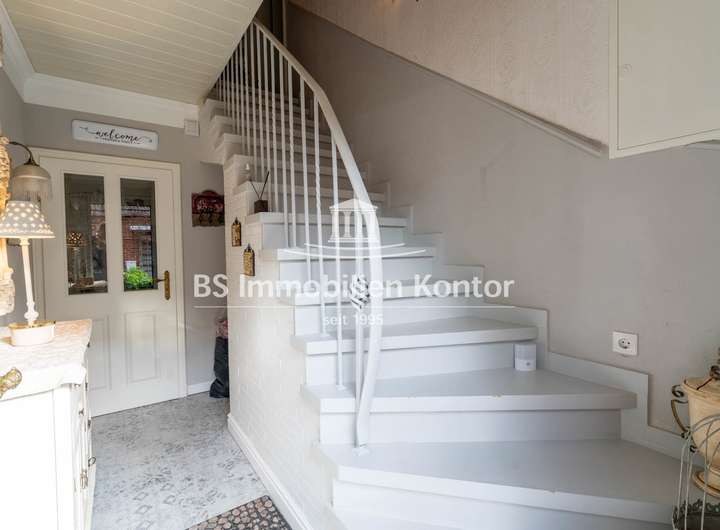 Dieses gemütliche Einfamilienhaus liegt im Stadtkern von Papenburg und wurde ca. 1957 in konventioneller Massivbauweise mit einem Satteldach erstellt. Das Eigentumsgrundstück bemisst ca. 1.400qm und wurde liebevoll parkähnlich angelegt. Ein kleines Idyll umringt von viel Grün, in dem Ihrer Kreativität keine Grenzen gesetzt sind. Der Wintergarten lässt sich durch den Essbereich betreten und befindet sich auf der Rückseite des Hauses. Beheizt wird das Objekt durch eine Gas-Zentral-Heizung (Bj. 2014), Fußbodenerwärmung in Bad und Essbereich. Zwischen 2014 und 2023 fanden kontinuierlich umfangreiche Renovierungsmaßnahmen statt (siehe Aufstellung). Die weißen Kunststofffenster sind mit einer Isolierverglasung und Jalousien ausgestattet. Die zahlreichen Fenster lassen die Räumlichkeiten hell und freundlich wirken und ermöglichen einen schönen Blick in den Garten.