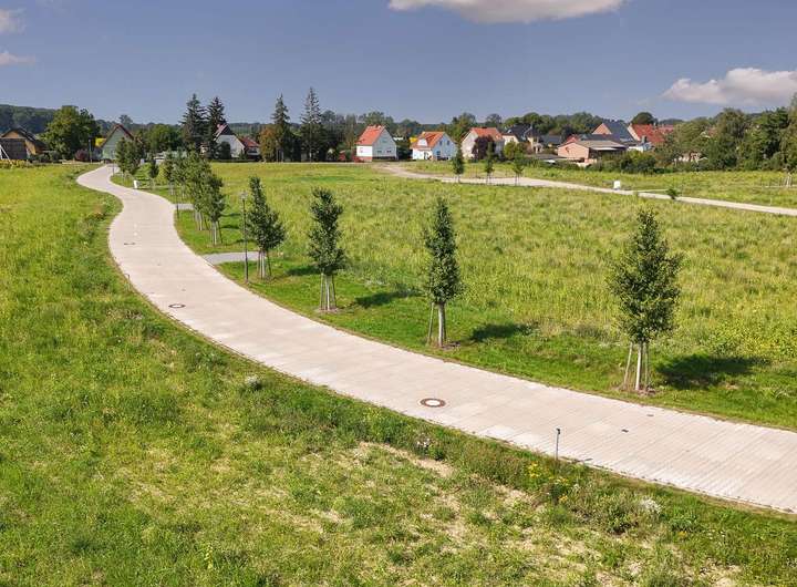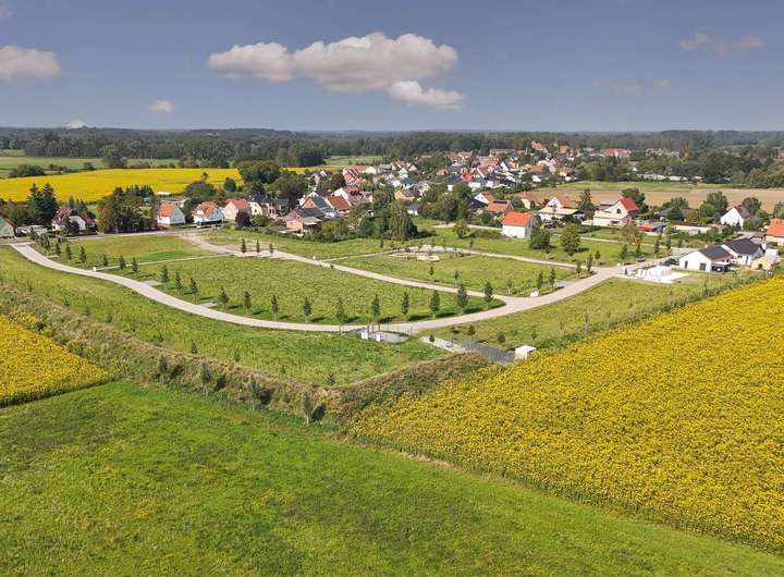 Alle Grundstücke sind ruhig gelegen, einige grenzen sogar direkt ans offene Feld. Gepflegte Anpflanzungen schaffen eine einladende Atmosphäre – und machen deutlich: Hier entsteht nicht nur Wohnraum, sondern ein Lebenswerter Ort der sich mit dem bestehenden Dorf verbindet.