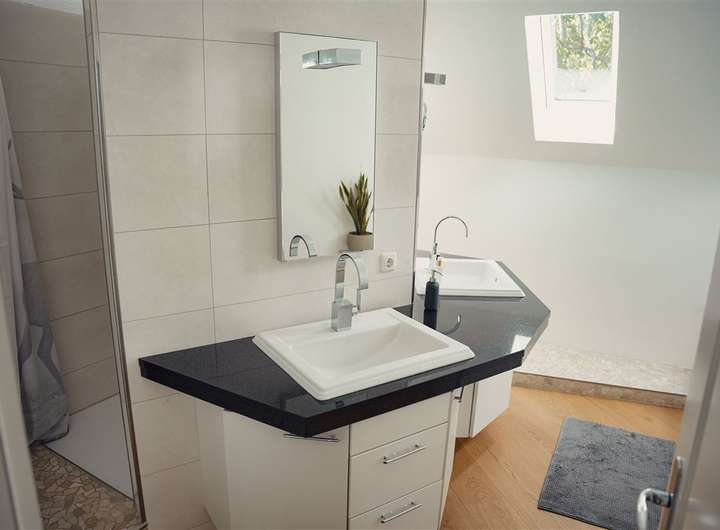 - zwei Bäder mit edlen Feinsteinfliesen und Mosaikdetails