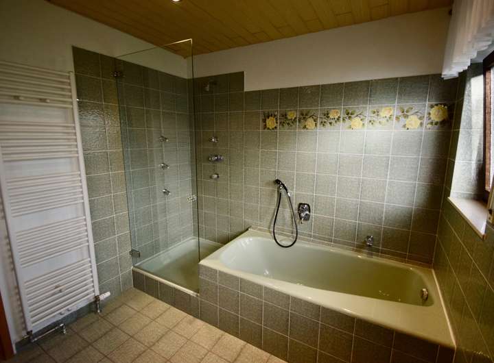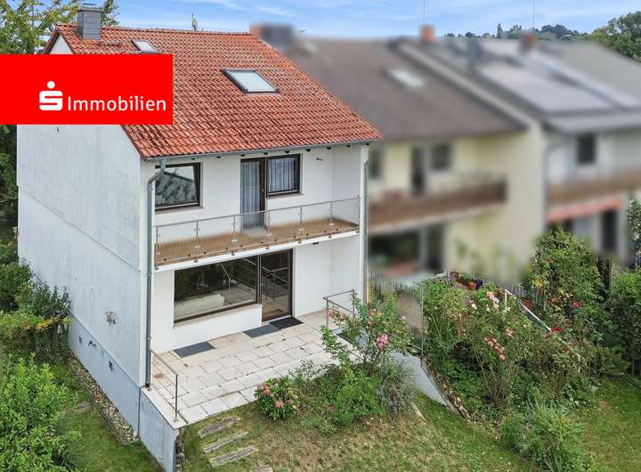 Im Obergeschoss befinden sich das Elternschlafzimmer mit Balkonzugang und Blick ins Grüne, zwei Kinder- oder Arbeitszimmer und Tageslichtbad mit Dusche, Badewanne sowie WC.