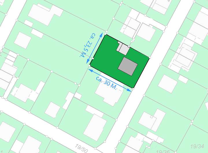 Die voraussichtlich mögliche GFZ liegt bei 0,75 bis 0,85 orientiert man sich an der Bebauung der Umgebung. Entsprechend ist auch hier eine Genehmigungsfähigkeit in diesem Rahmen wahrscheinlich. Zwei verbindliche Baugrenzen wurden von der Lokalbaukommission bereits festgelegt, was Ihnen Planungssicherheit gibt.