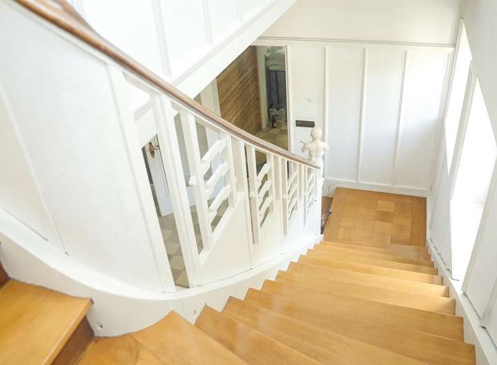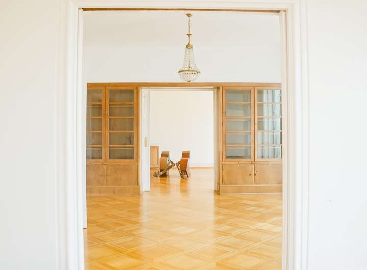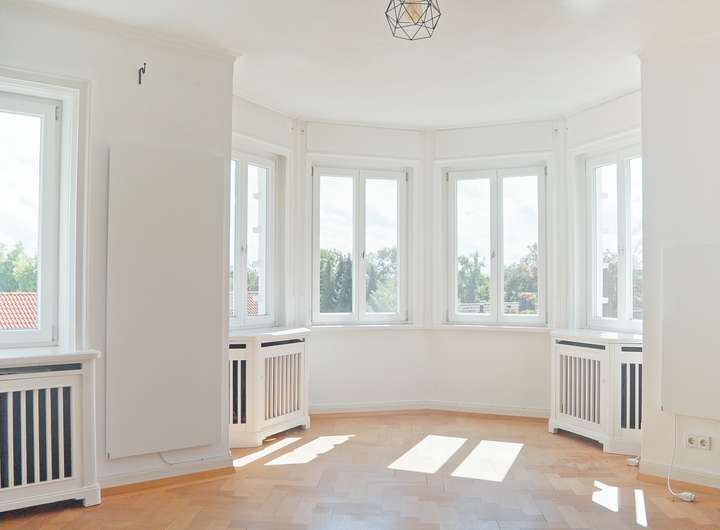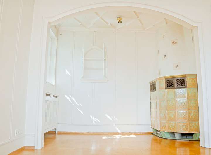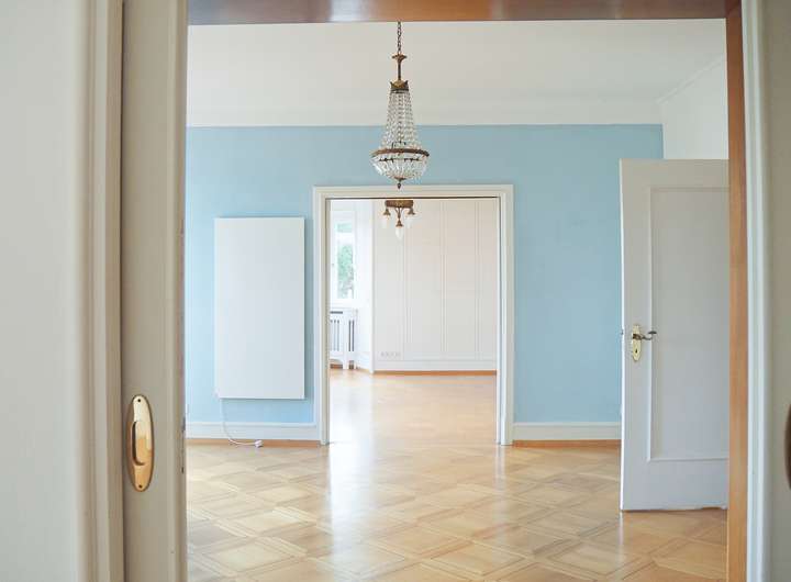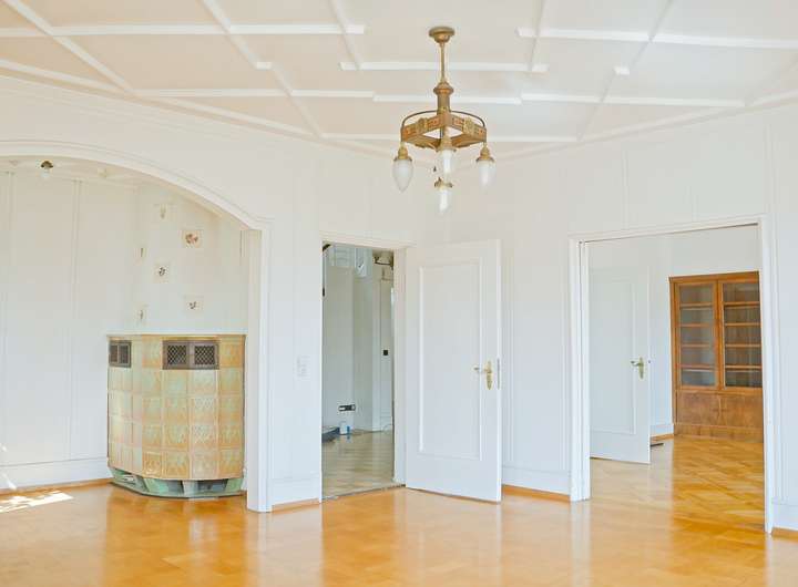 Elegante Details: Hohe Stuckdecken und edler Parkettboden.