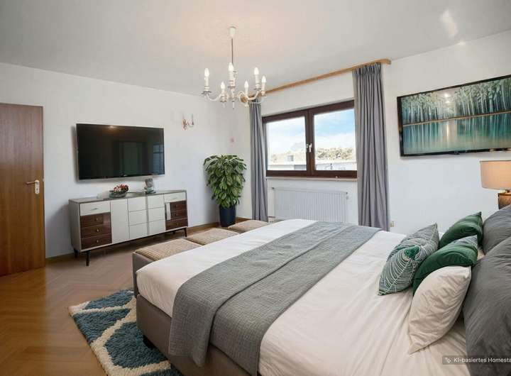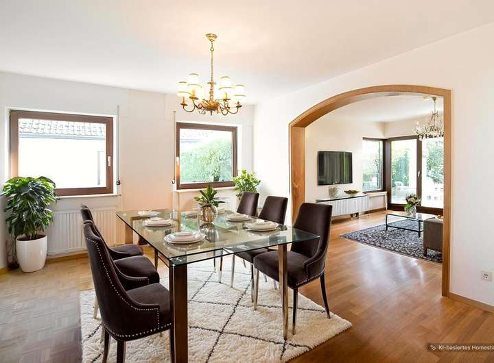 Dieses vollständig renovierte Einfamilienhaus bietet auf ca. 289 m² Wohnfläche und einem ca. 751 m² großen Grundstück ein großzügiges und komfortables Wohnambiente. Das 1979 erbaute Haus befindet sich in einer ruhigen Anliegerstraße im gesuchten Stadtteil Steinberg. Im Jahr 2021 wurden umfang- reiche Renovierungen vorgenommen, die den Charme und die Funktionalität der Immobilie weiter steigern. Insgesamt acht Zimmer, darunter sechs Schlafzimmer, warten auf neue Eigentümer. Vier Badezimmer sowie drei zusätzliche WC sorgen für ausreichend Komfort auch für größere Familien. Besonders hervorzuheben ist der Balkon im Obergeschoss, der sich über die gesamte Hausbreite erstreckt, während im Erdgeschoss eine große, teilweise überdachte Terrasse zum Verweilen einlädt. Eine elektrische Markise bietet zusätzlichen Sonnenschutz. Die Innenausstattung zeichnet sich durch hochwertige Materialien und eine gehobene Ausführungsqualität aus. Im Wohn- und Essbereich wurde ein edles Holzparkett verlegt, das diesen zentralen Bereich des Hauses besonders einladend gestaltet. Die Holz-Isofenster mit Zweifach-Verglasung und Rollladen tragen zur Energieeffizienz des Hauses bei, wobei ein Teil der Rollläden elektrisch bedient werden können. Eine Einbauküche, ein Gäste-WC und ein Duschbad runden das Raumangebot im Erdgeschoss ab. Das Obergeschoss beherbergt 6 weitere Räume, 2 Bäder und 2 weitere WC.