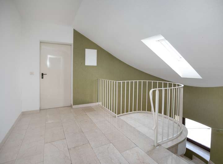 Ein besonderes Highlight stellen die 2 Garagen mit Platz für 3 PKW und die zusätzlichen Stellplätze vor den Garagen dar, die ausreichend Platz für Fahrzeuge bieten. Das Keller- geschoss ist sowohl von innen als auch außen zugänglich, was eine flexible Nutzung ermöglicht. Dessen Räume können vielfältig als Büro und Hobbyräume genutzt werden oder auch als Wohnraum mit einer separaten Einliegerwohnung dienen. Potenzial zur Erweiterung bietet das Dachgeschoss, das zusätzlich als Wohnraum ausgebaut werden kann. Alle für einen Ausbau notwendigen Elektroleitungen und Heizungs-, Wasser- u. Abwasserrohre wurden bereits ins Dachgeschoss verlegt.