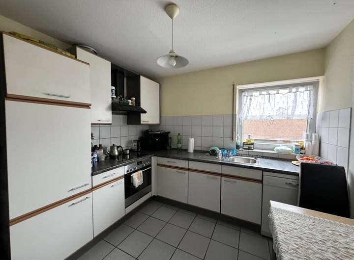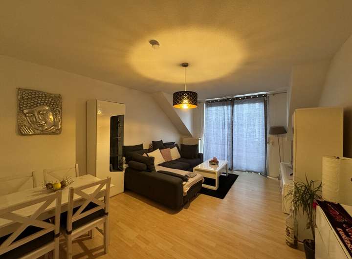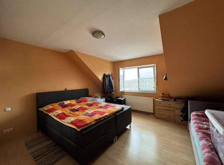 Dachgeschoss 2-Zimmer: Wohn- und Essbereich, Schlafzimmer, Küche, Bad mit Wanne, Balkon, PKW-Stellplatz, Kellerraum