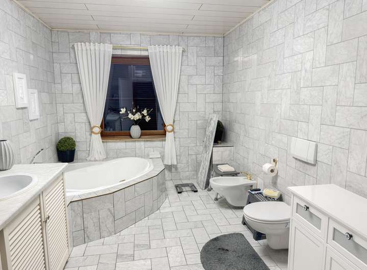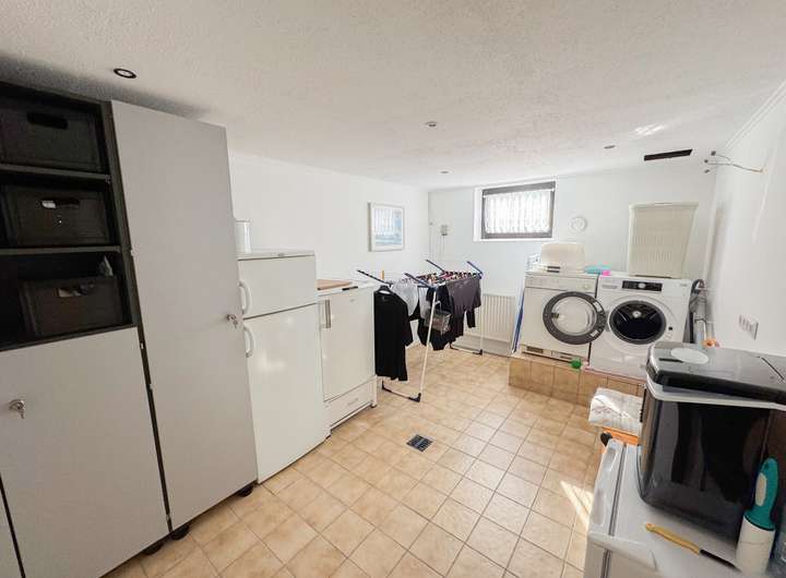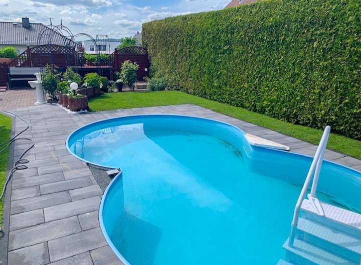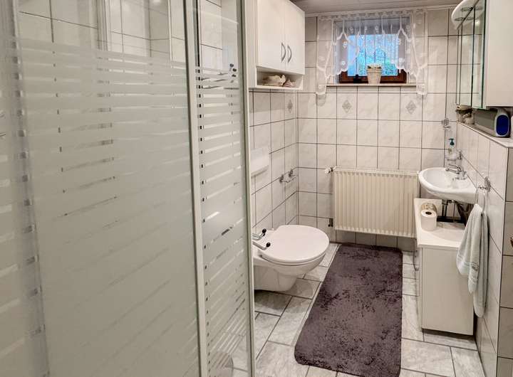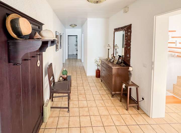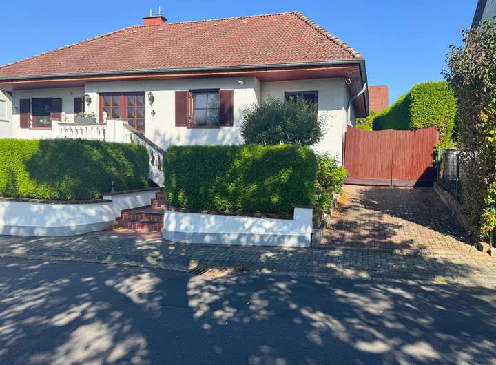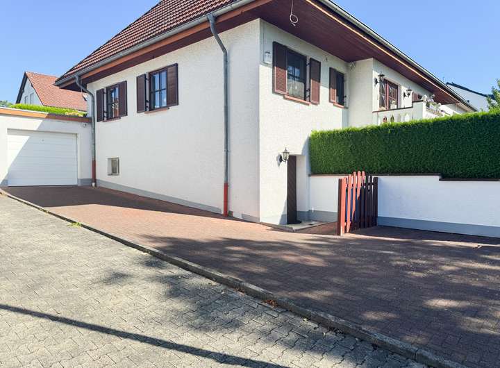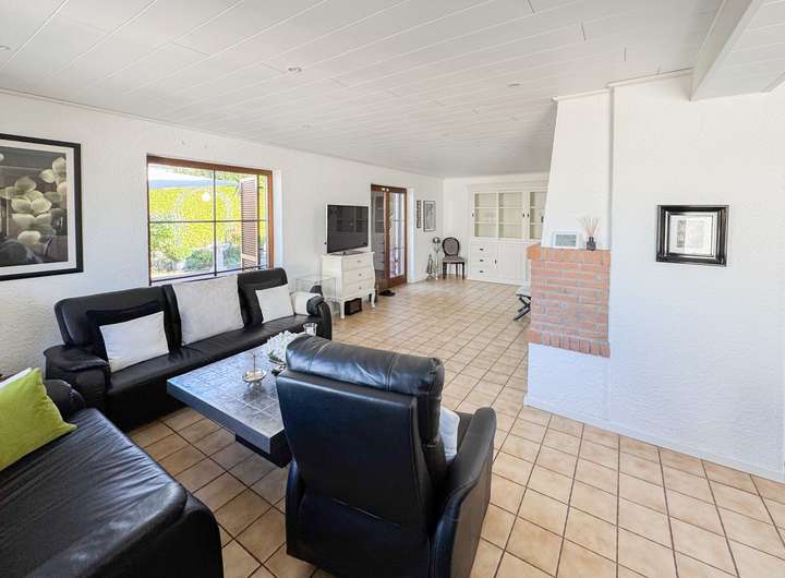 Dieses massive Einfamilienhaus wurde ca. 1990 erbaut und erstreckt sich über eine Etage, wodurch Wohnen auf einer Ebene ermöglicht wird. Die Wohnfläche von ca. 142 m² umfasst ein klimatisiertes Schlafzimmer mit angrenzender Ankleide, ein Büro/Kind, ein Badezimmer sowie Gäste. Der begehbare Kleiderschrank sorgt für Stauraum und Komfort. Die Einbauküche lädt zum Kochen und Verweilen ein. Ergänzend sorgt ein luxuriöser Wellnessbereich mit Sauna und Pool für Entspannung. Im EG befinden sich zudem der Wohnbereich und das Esszimmer mit Zugang zum Garten, sodass Sie nahtlos Innen- und Außenwohnen genießen. Das ca. 592 m² große Grundstück bietet eine tolle Fernsicht. Der gepflegte Garten mit Pool eignet sich hervorragend für gesellige Abende oder ruhige Momente im Freien. Das Haus ist unterkellert und bietet vielseitige Nutzungsmöglichkeiten-neben dem Hobbyraum mit Sauna und Duschbad mit WC stehen zusätzliche Stauraumflächen und Weiteres zur individuellen Nutzung bereit. Das DG bietet zudem Ausbaupotenzial: Raumhöhe und Raumgestaltungsmöglichkeiten ermöglichen eine flexible Erweiterung bei Bedarf, z. B. als zusätzlicher Wohn- oder Arbeitsbereich, Gästezimmer oder Mansardenzugang. Der Hofbereich mit großer Garage sorgt für ausreichend Stellfläche für Ihre PKWs.