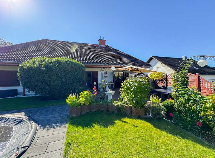Exklusives Einfamilienhaus auf einer Ebene mit Wellnessbereich, Gartenparadies und Fernsicht!