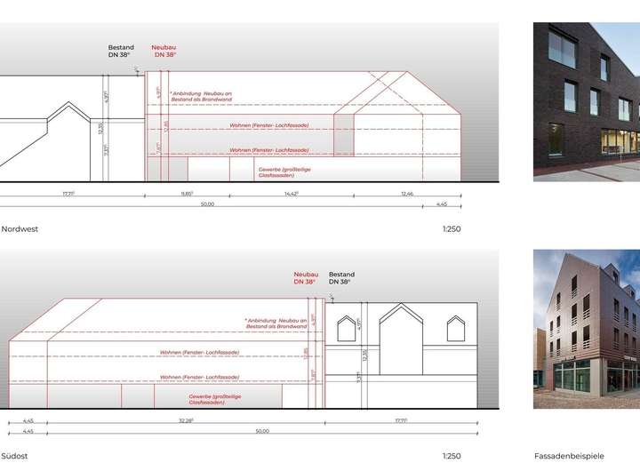 Für das Grundstück liegt bereits eine genehmigte Bauvoranfrage vor. Diese sieht den Neubau von 12 Wohnungen und zusätzlichen Gewerbeflächen samt Tiefgarage vor.
