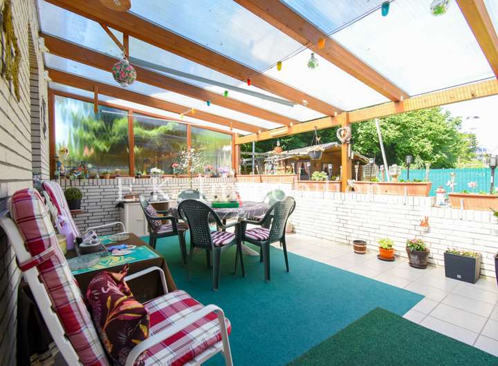 Eine große Terrasse - als Sommergarten ausgeführt - mit nordseitiger Ausrichtung runden das Angebot ab und bieten ideale Voraussetzungen für gemütliche Familienabende oder Zusammenkünfte mit Freunden.