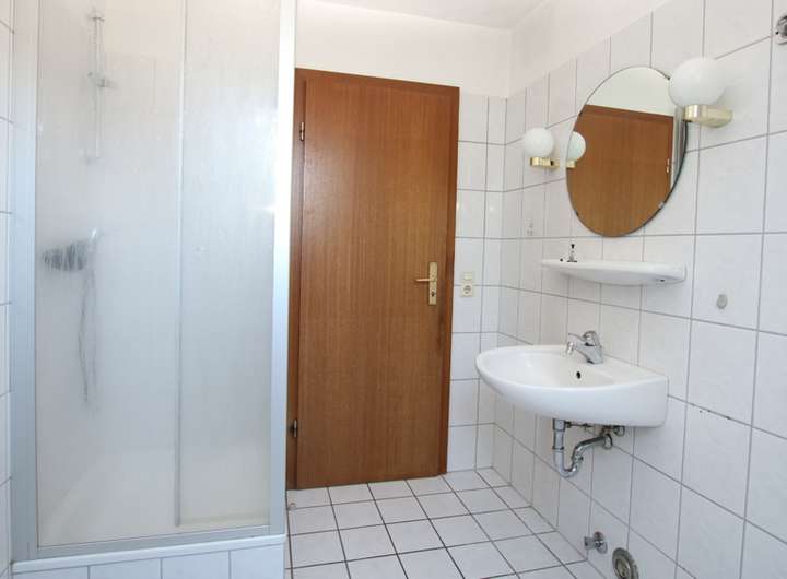 Küchenbereich, Flur und Badezimmer gefliest (weiß)