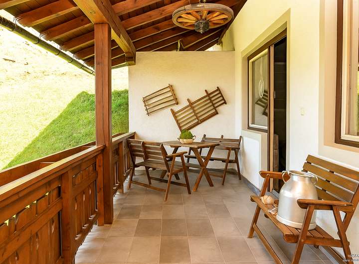 Die Innenräume präsentieren sich in authentischem Landhausstil mit freiliegenden Holzbalken, gemütlichem Kamin und einer hochwertigen Einbauküche, die das Herz eines jeden Hobbykochs höherschlagen lässt. Für behagliche Wärme sorgen eine moderne Zentralheizung, gespeist durch eine Kombination aus Holz und Solarenergie.