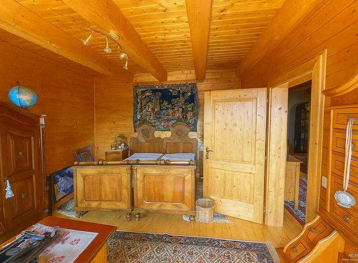Die Wasserversorgung ist durch eine eigene Quelle unabhängig gesichert. Auf dem weitläufigen Grundstück befinden sich zudem drei Außenstellplätze und vier Garagen. Die bevorzugte Südlage garantiert maximale Sonneneinstrahlung und unterstreicht den exklusiven Charakter dieser außergewöhnlichen Liegenschaft.