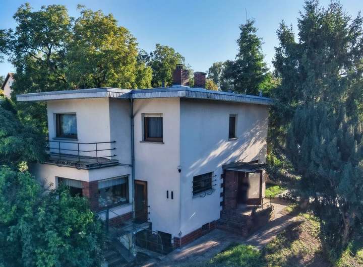 Das Haus zeigt sich mit einem villenähnlichen Charakter und gestalterischen Elementen im Bauhaus - Stil. Klare Linien, ein markanter Baukörper und eine starke Präsenz von der Straße aus prägen das Bild.