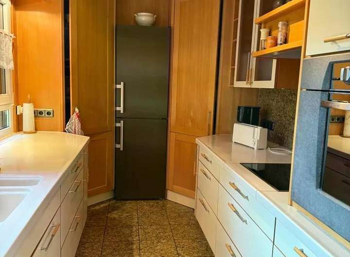 Balkon, Terrasse, Garten, Keller, Vollbad, Sauna, Einbauküche, Gäste-WC, Kamin, Parkett, Laminat, Fliesen