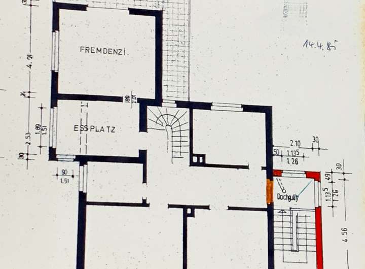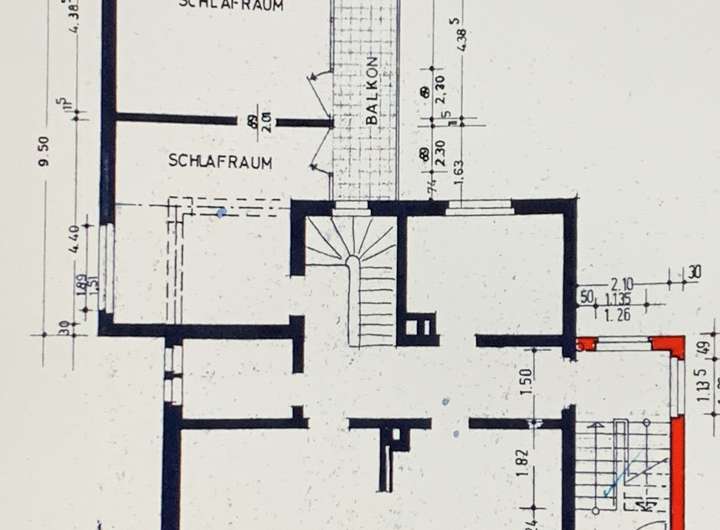 Die originalen Zimmertüren sind gut erhalten, die innenliegenden Treppen versprühen den Charme des Jugendstils. Das Schachbrettparkett im Anbau, das auf beiden Etagen gut erhalten ist, ist ein gelungener Hinweis auf die späten 60er Jahre.