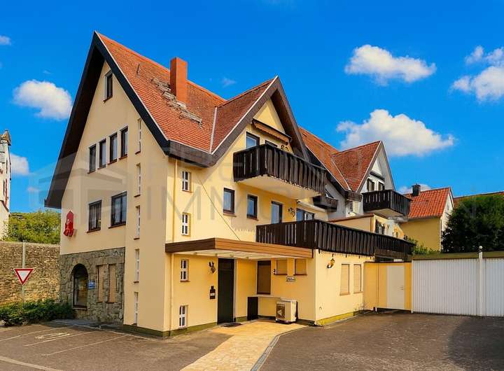 Dieses gepflegte Wohn- und Geschäftshaus präsentiert sich in einer erstklassigen zentraler Lage – unmittelbar gegenüber dem Schloss und nur wenige Schritte von der katholischen Kirche St. Remigius entfernt. Die Immobilie, unweit des Ärztezentrums, überzeugt durch ihre durchdachte Aufteilung, moderne Ausstattung und nachhaltige Vermietbarkeit. Im Erdgeschoss befindet sich eine großzügige, klimatisierte Gewerbeeinheit, die langfristig (31.12.2034) vermietet ist. Diese bietet dem zukünftigen Eigentümer stabile, planbare Mieteinnahmen. Bei einer Vollvermietung im tagesaktuellen Ist-Zustand darf eine Rendite von ca. 6% erwartet werden. Ergänzt wird das Angebot durch zwei komfortable Wohneinheiten im 1. Obergeschoss sowie im Dachgeschoss, die sich durch ihre durchdachten Funktbionsabläufen und Ausstattung hervorragend zur Vermietung eignen. Beide Wohnungen verfügen über Einbauküchen. Die Kombination aus langfristig, solider vermieteter Gewerbefläche und flexibel nutzbaren Wohneinheiten macht dieses Objekt zu einer idealen Kapitalanlage in gefragter, stragegisch günstiger Lage. Aufteilung: - Gewerbeeinheit (klimatisiert) im EG : ca. 111 m² - Wohnung im 1. OG mit Kamin (leerstehend, z.Zt. nicht vermietet): ca. 104 m² - Wohnung im DG (leerstehemd, z.ZT. nicht vermietet): ca. 87 m²