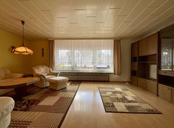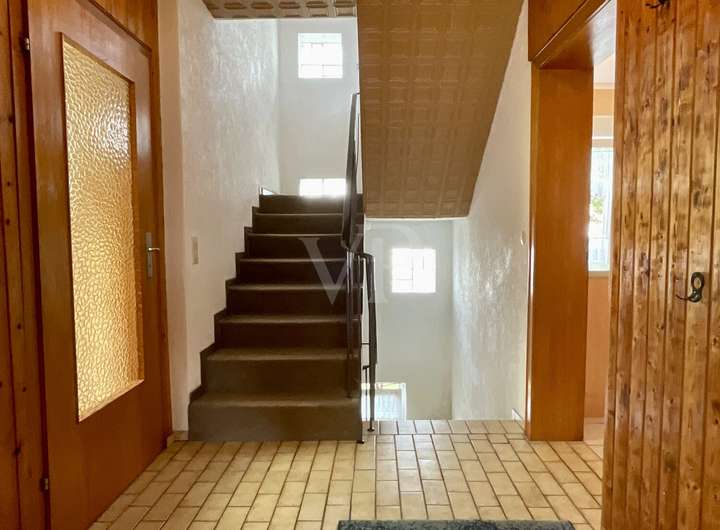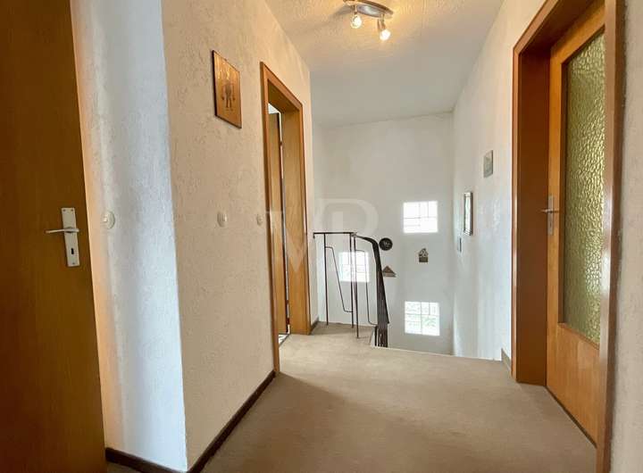 Doppelhaushälfte Hochparterre: - Flur - Wohnzimmer - Gäste-WC - Küche mit Essplatz und Zugang zum Balkon Obergeschoss: - 3 Zimmer (ca. 16 m², 11,5 m², 10,5 m²) - Badezimmer mit Dusche und Wanne - WC - Balkon Keller: - Hobbyraum - Waschkeller - Heizungsraum mit Öllager - Zugang zum Garten Ausstattung: - Fenster: zweifach verglaste Kunststofffenster (1998) - Außenrollläden - Haustür (1998) - Fußböden: Teppich, Laminat, Fliesen - Heizung: Ölheizung (ca. 2000) - Internet: SAT Renovierungen / Modernisierungen: - Dacheindeckung (2013) - Dämmung (2000)