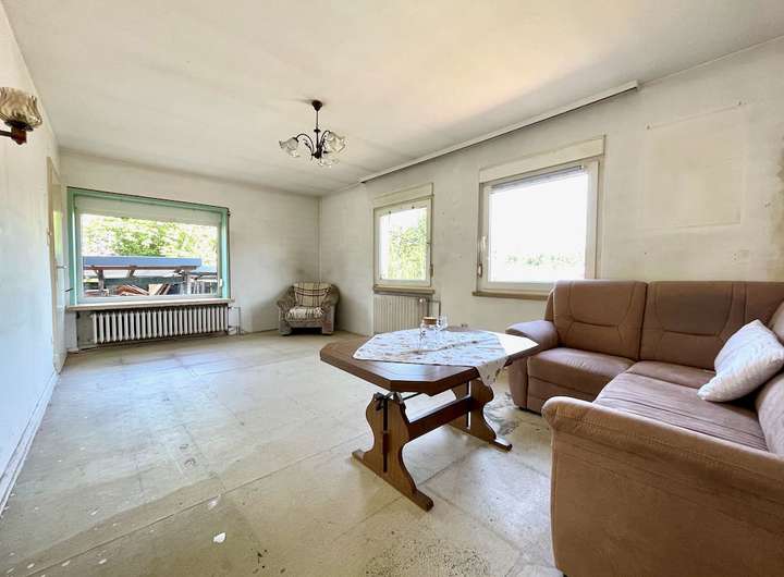 Das vorhandene Wohnzimmer in der Südseite des Hauses könnte bei Bedarf auch in zwei Räume aufgeteilt werden, der 2. Zugang ist bereits vorhanden.