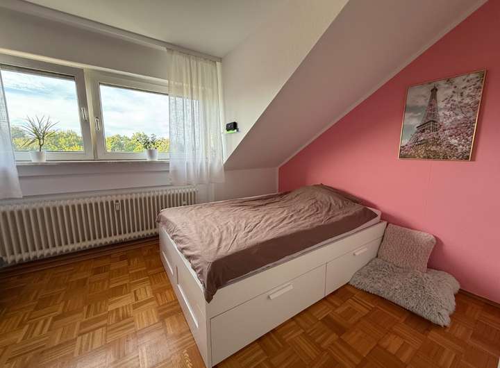 • Dachgeschoss: Geschmackvolle 3-Zimmer-Wohnung, ebenfalls mit Balkon. Diese Wohnung war ehemals als 4-Zimmer- Wohnung geplant. Die Zurückführung in den Zustand ist durch einfache Mittel möglich.