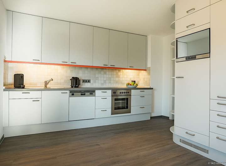 Diese Wohnung besticht durch ihre lichtdurchfluteten Räume und die durchdachte Aufteilung. Vom einladenden Flur aus erreichen Sie alle Zimmer. Die geräumige Küche ist mit einer praktischen Einbauküche ausgestattet und liegt direkt neben dem großzügigen Wohn- und Essbereich. Von dort aus gelangen Sie auf den sonnigen Balkon mit herrlichem Weitblick.