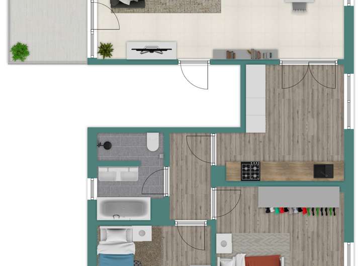 Der durchdachte Grundriss bietet viel Flexibilität: Mit wenig Aufwand kann ein zusätzliches Zimmer geschaffen werden – ideal für Familien oder alle, die mehr Platz zum Leben und Arbeiten wünschen.