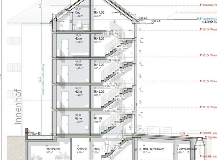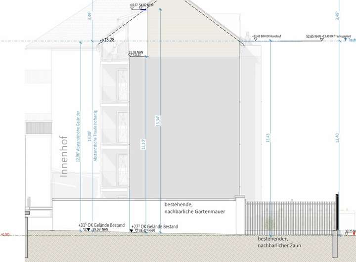 Gesamt ergeben sich somit 1.031,25 qm Wohnfläche aus genehmigtem Neubau und der Villa im Bestand, welche ebenso in 5 ETW's umgebaut werden kann.
