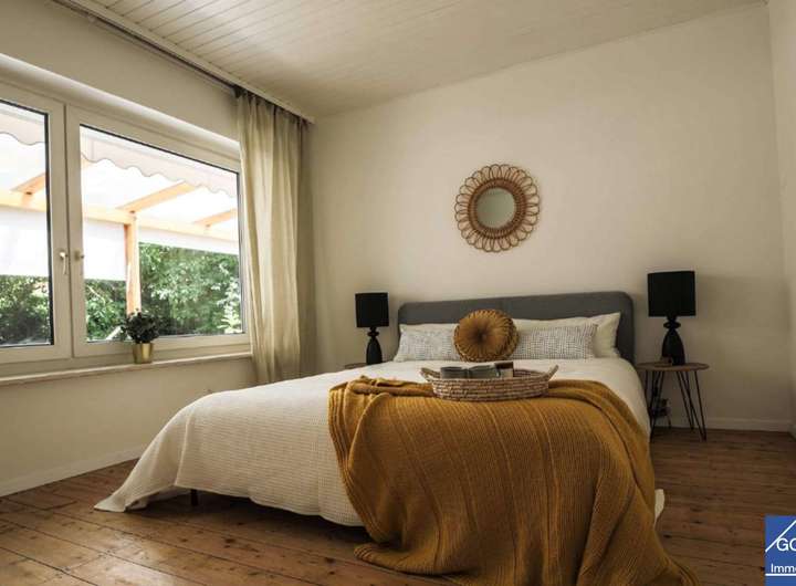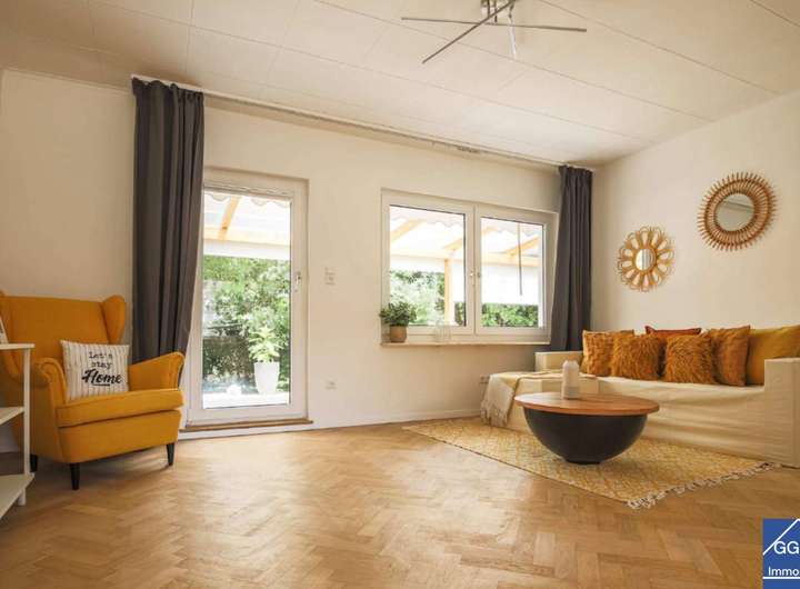 Schlussendlich runden als Highlight der blickgeschützte Garten, eine Doppelgarage, sowie 2 weitere Stellplätze das Angebot ab.