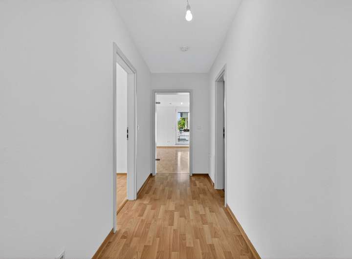 - Innentüren als Holztüren (weiß), Glastüre im Wohnzimmer