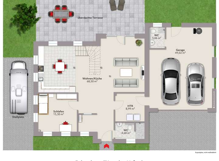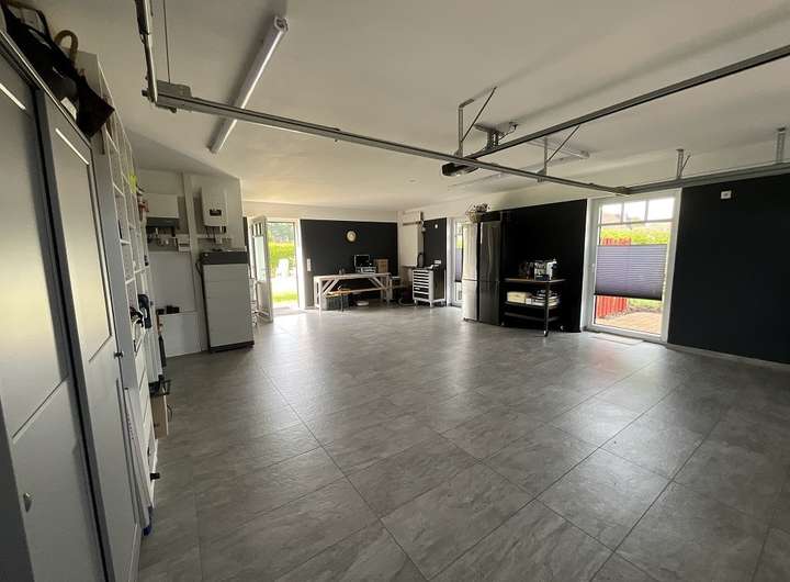 Auch das Außen- und Nebengelass setzt Maßstäbe: die großzügige Doppelgarage mit beheiztem Fußboden und direktem Zugang in das Wohnhaus oder den Garten bietet Komfort, den man sofort zu schätzen weiß. Selbst ein eigenes Badezimmer ist hier integriert.
