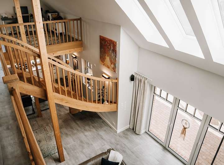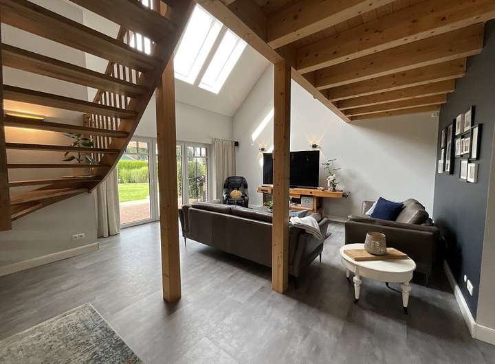 Auf einer großzügigen Wohnfläche von ca. 160 m² und einem weitläufigen Grundstück von ca. 859 m² erwartet Sie ein Refugium, das gleichermaßen Platz für Rückzug und geselliges Miteinander bietet. Schon beim Betreten offenbart sich die offene Architektur: der lichtdurchflutete Wohnbereich mit Galerie vermittelt Großzügigkeit und Geborgenheit zugleich. Drei Dachflächenfenster mit cleverem Regensensor eröffnen tagsüber den Blick in die Natur und abends in den Sternenhimmel – ein Highlight für romantische Stunden und entspannte Abende.