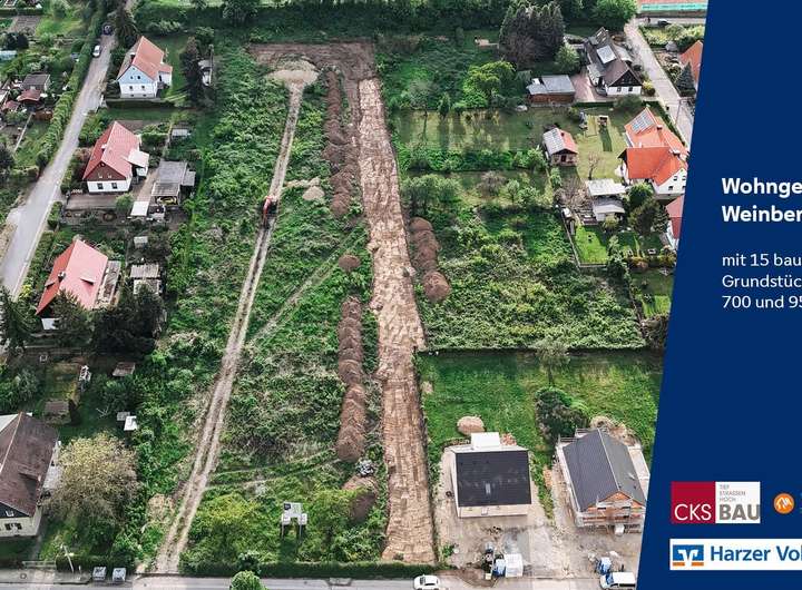 Blankenburg (Harz) - seit 2016 staatlich anerkannter Erholungsort - ist eine Stadt im Landkreis Harz in Sachsen-Anhalt. Das neue Baugebiet an der Weinbergsiedlung mit 15 Grundstücken von 371 m² bis 955 m² befindet sich in einem ruhigen Wohngebiet am Stadtrand. Das Stadtzentrum sowie das Einkaufszentrum sind innerhalb weniger Minuten mit dem Auto erreichbar.
