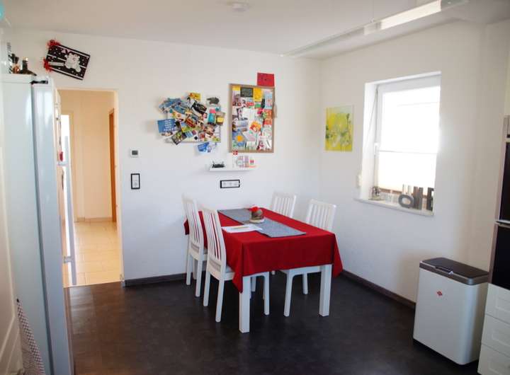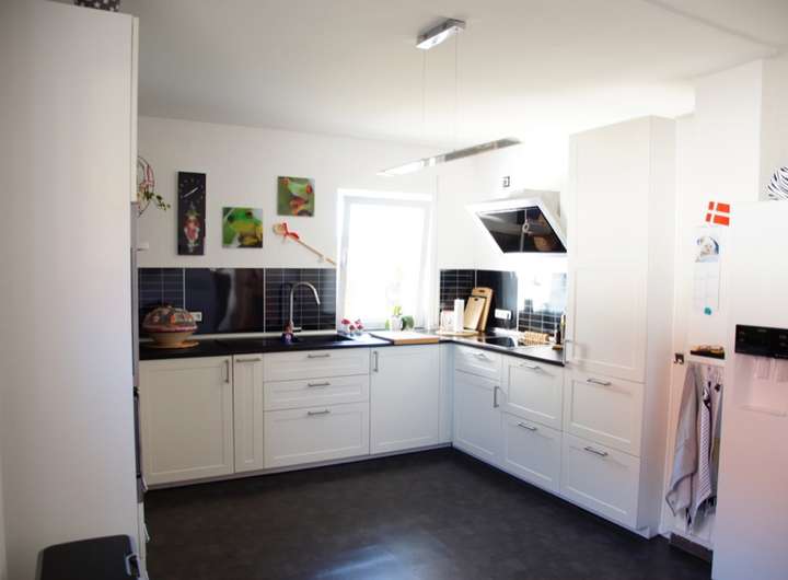 - die schön geschnittene Küche mit weißer Einbauküche inkl. hochwertiger Küchengroßgeräte (neu) ausgestattet und bietet genügend Platz für einen großen Esstisch