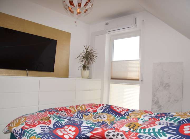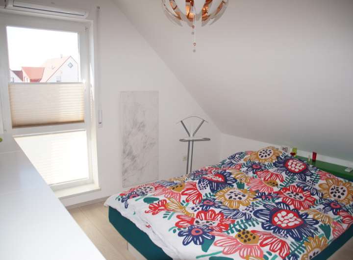 - das Schlafzimmer mit Vinylboden
