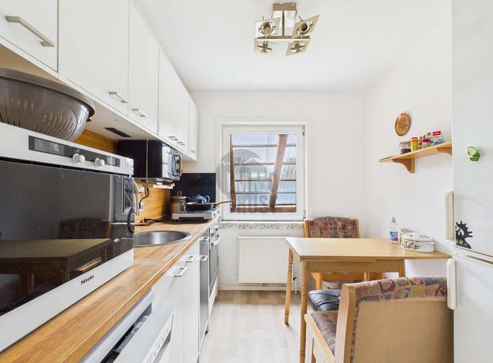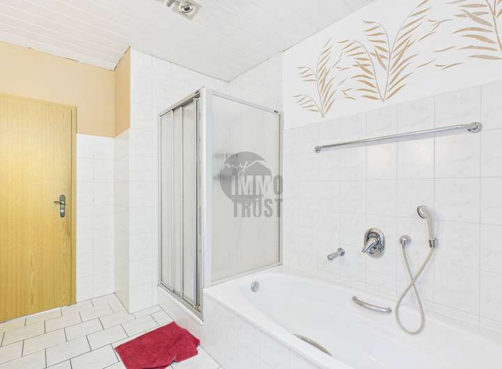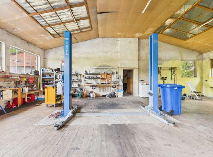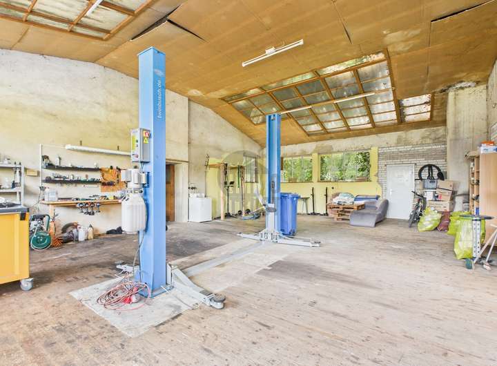 - Einbauküche in Wohnungen im 1. OG - Offene Küche im Erdgeschoss - Kamin im Wohnbereich der Erdgeschoss-Wohneinheit - Balkon in der 2-Zimmer-Wohnung im 1. OG - Gartennutzung möglich - Teilweise unterkellert - Dachboden vorhanden - Gasetagenheizung für jede Wohnung - Getrennte Strom- und Gaszähler - Reichlich PKW-Stellplätze vor dem Haus - Große Garage mit Werkstatt und Hebebühne ca. 142m²