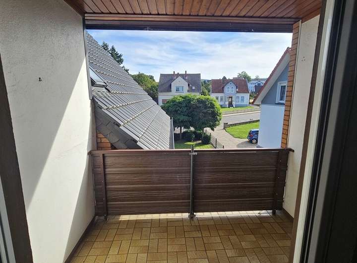 Wohnraum mit Balkon, Duschbad mit WC, Arbeitszimmer und Gäste – WC.