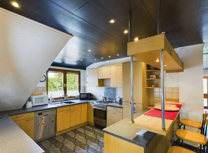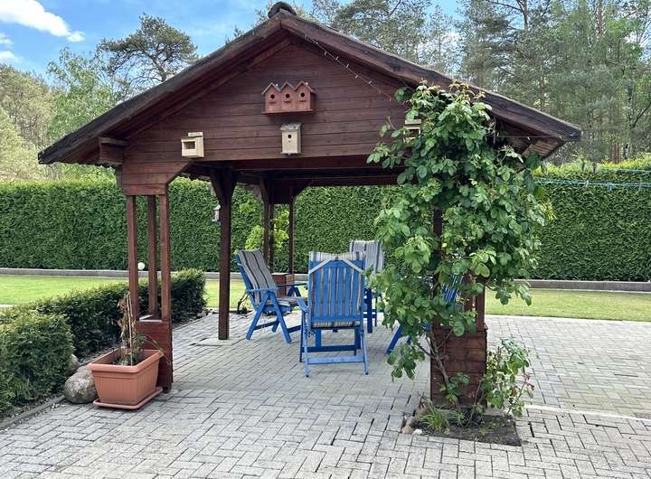 Lage: Das Haus befindet sich in einer ruhigen Waldrandlage und bietet somit viel Ruhe und Erholung. Gleichzeitig sind Einkaufsmöglichkeiten und öffentliche Verkehrsmittel in wenigen Minuten erreichbar.