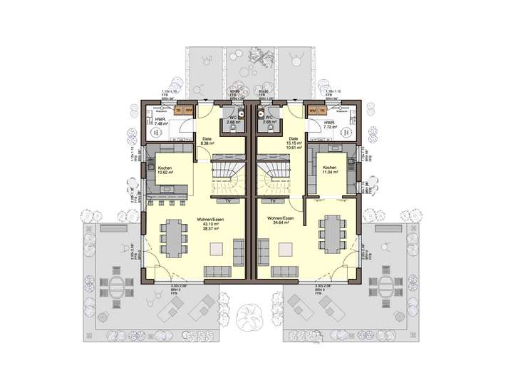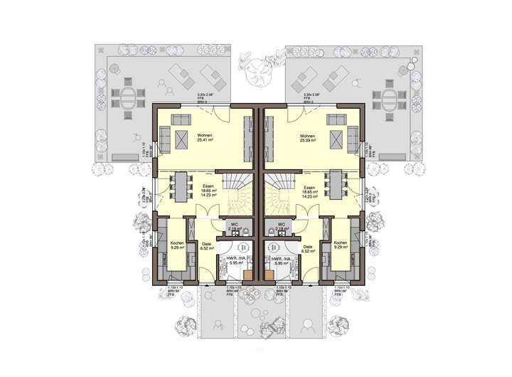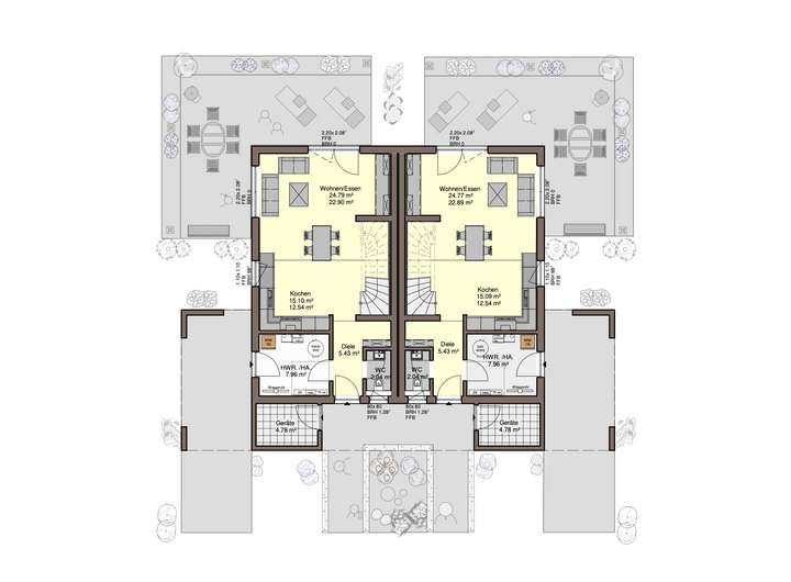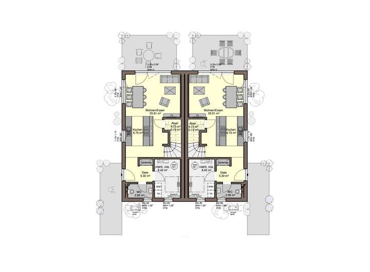 Diese moderne Doppelhaushälfte verbindet stilvolles Design mit einer cleveren Raumaufteilung – ideal für eine kleine Familie. Hier erwartet Sie höchster Wohnkomfort, gepaart mit einer gesunden, behaglichen Wohnatmosphäre. Im lichtdurchfluteten Erdgeschoss bildet die Küche das Herz des Hauses. Angrenzend daran liegen der Wohn- und Essbereich, der zum gemeinsamen Verweilen einlädt. Auf der sonnigen Südwestterrasse können Sie entspannte Sommerabende genießen und den Tag mit einem erfrischenden Getränk in Ruhe ausklingen lassen.