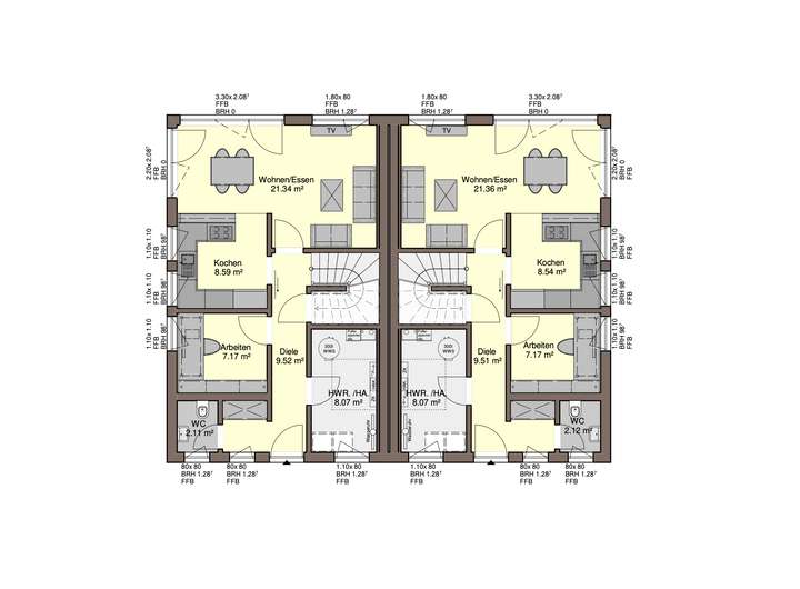 - Es handelt sich um ein geplantes Projekt, bei dem Sie Einfluss auf die Grundrisse, Fenster, Bodenbeläge und vieles mehr nehmen können. Optional können Sie das Haus auch vergrößern und unterkellern. Die gezeigten Grundrisse gelten als erste Idee. Es steht Ihnen ein Baufenster von 7,90 m x 13 m zur Verfügung.