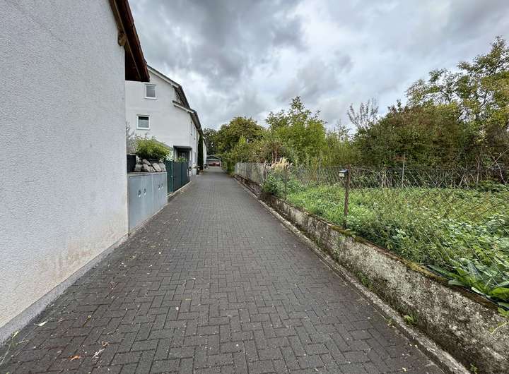 Die Zufahrt erfolgt über das bestehende Vorderhaus, wodurch das „neue“ Grundstück diskret und zugleich gut erreichbar erschlossen wird. Direkt hinter dem Grundstück befindet sich eine ruhige Stichstraße, die die angenehme Wohnqualität zusätzlich unterstreicht.