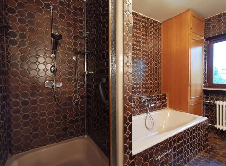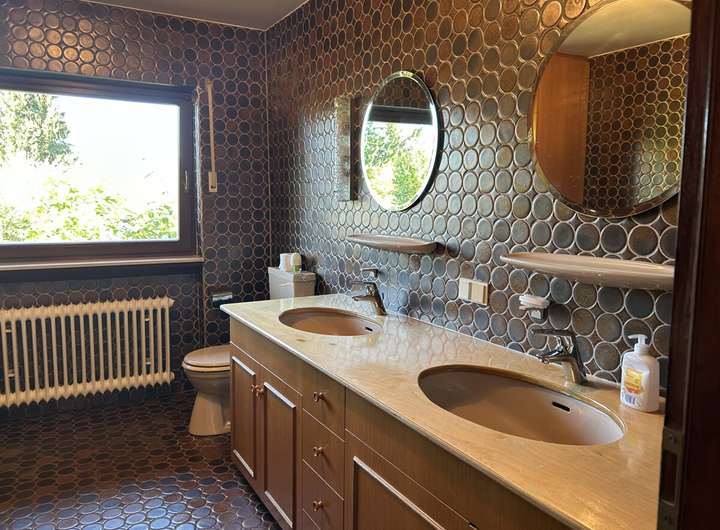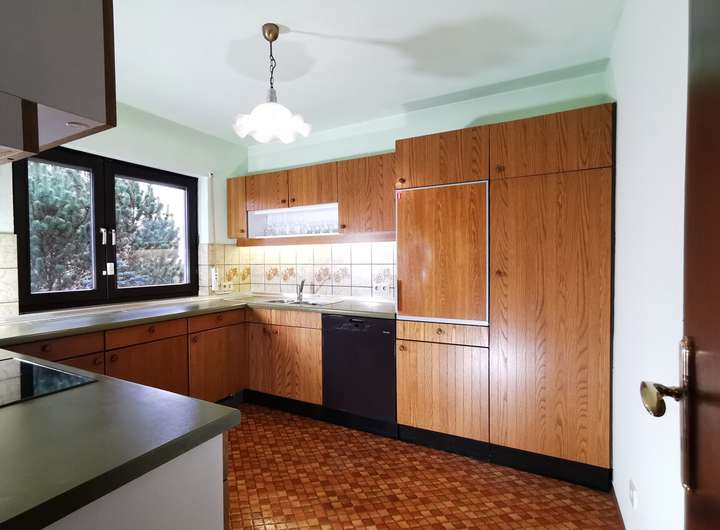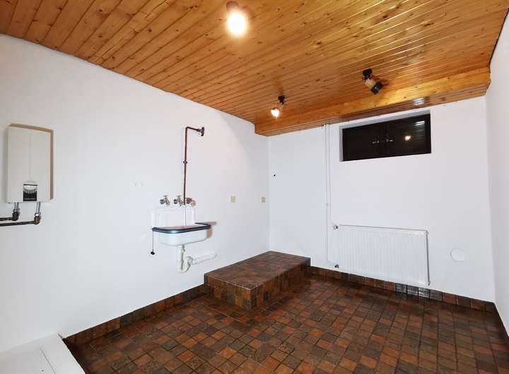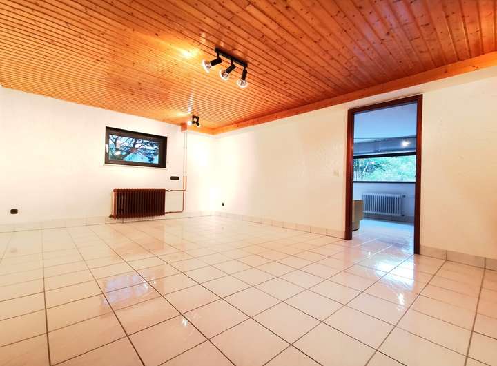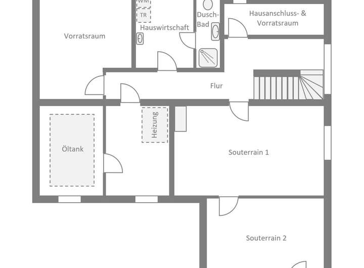 Das Souterrain ist komplett ausgebaut. Zwei helle und große Räume könnten als Hobby- oder Wellnessraum gestaltet werden. Ebenfalls wäre es denkbar, sie als Arbeits- oder Gästezimmer zu nutzen. Praktisch ist der direkte Zugang von dort aus in den Garten. Zur Nutzfläche gehören dann noch der Öltank- und Heizungsraum, ein Hauswirtschafts- sowie ein großer Vorratsraum und ein Hausanschlussraum. Ein kleines Duschbad mit WC rundet diese Ebene ab.