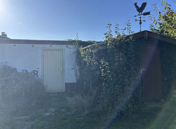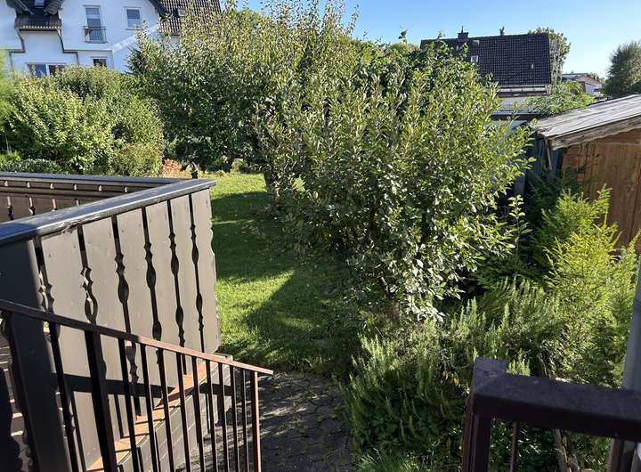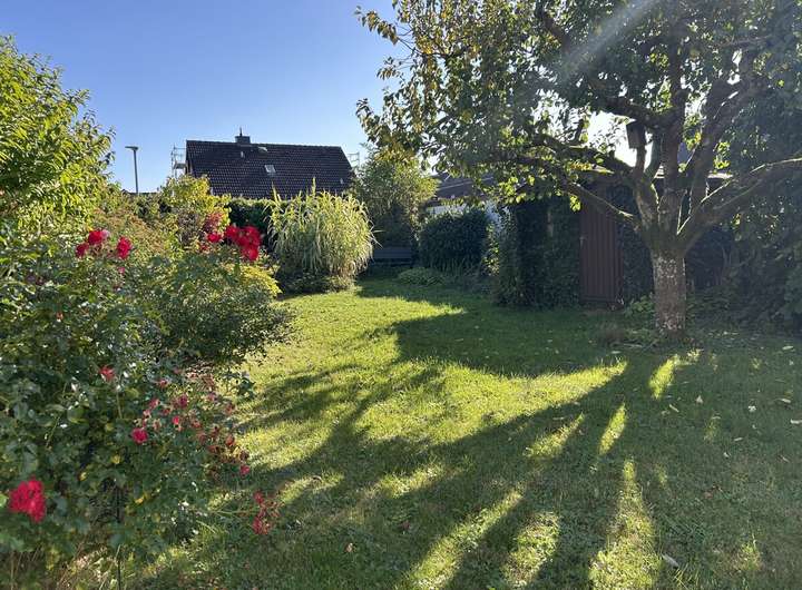 Der schön angelegte und bepflanzte Gartenbereich lädt zu entspannten Stunden im Freien ein und bietet Rückzugsmöglichkeiten sowie Stauraum durch das Gerätehaus.
