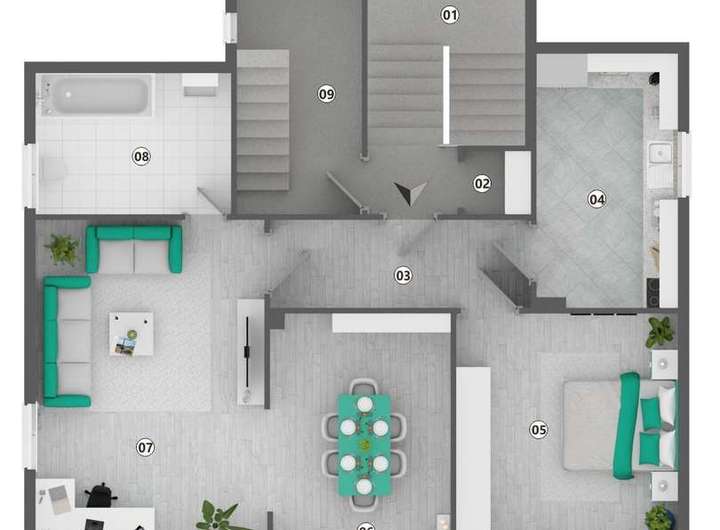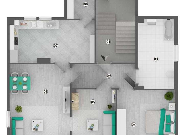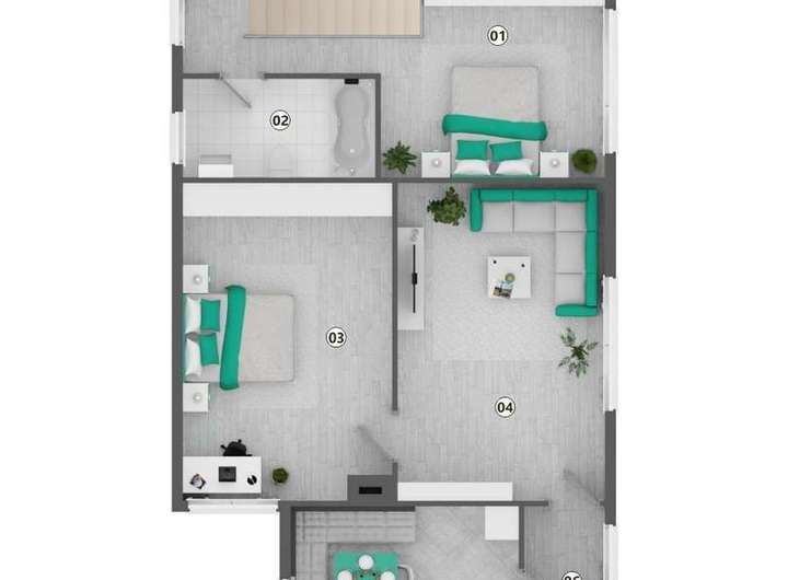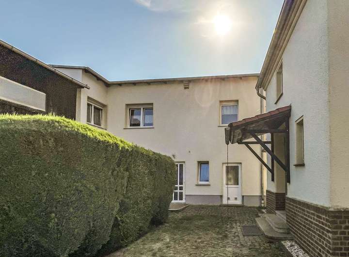 Ergänzt wird das Ensemble durch ein separates Nebenhaus mit drei weiteren Wohnungen. Eine Einheit ist derzeit vermietet und generiert stabile Mieteinnahmen. Die beiden übrigen Wohnungen stehen leer und können nach Bedarf entweder neu vermietet oder selbst genutzt werden. Auch hier sind die Grundrisse gut durchdacht: Beispielsweise bietet eine der Einheiten eine großzügige Wohnküche mit über 25m² Fläche, ein separates Schlafzimmer sowie ein kleines Duschbad – ideal für Singles oder Pendler. Eine weitere Wohnung kombiniert zwei große Schlafzimmer mit einem Wohnzimmer und einem zusätzlichen Kinderzimmer. Die Raumstruktur erlaubt hier sowohl die Nutzung als Familienwohnung als auch eine WG-taugliche Aufteilung.