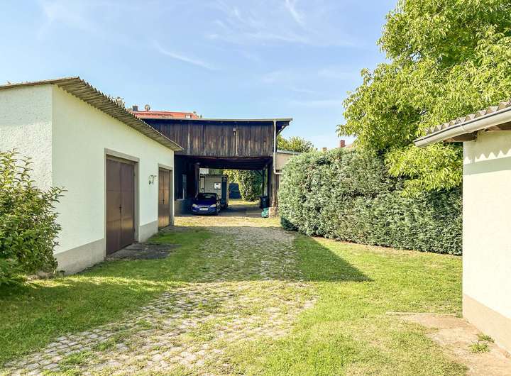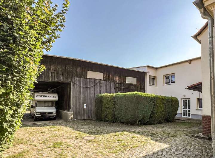 Ein besonderes Highlight ist das weitläufige Grundstück mit umfassender Außenanlage. Ein gepflegter Swimmingpool bildet das Zentrum des Gartens und lädt zur Erholung im Freien ein. Mehrere Nebengebäude – darunter eine große Scheune, ein Schuppen, eine Werkstatt sowie eine Garage – erweitern die Nutzungsmöglichkeiten erheblich. Ob als Lagerfläche, Hobbyraum oder zur tiernahen Haltung: Das Grundstück bietet vielfältige Optionen. Darüber hinaus befindet sich auf dem Gelände ein sanierungsbedürftiges Lehmhaus mit Ausbaupotenzial – ein interessantes Projekt für kreative Eigentümer oder Investoren mit einem Blick für Entwicklung.