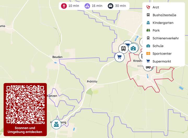 In Krostitz selbst stehen alle notwendigen Einrichtungen des täglichen Bedarfs zur Verfügung – von Supermärkten über Schulen und Kindergärten bis hin zu medizinischer Versorgung.